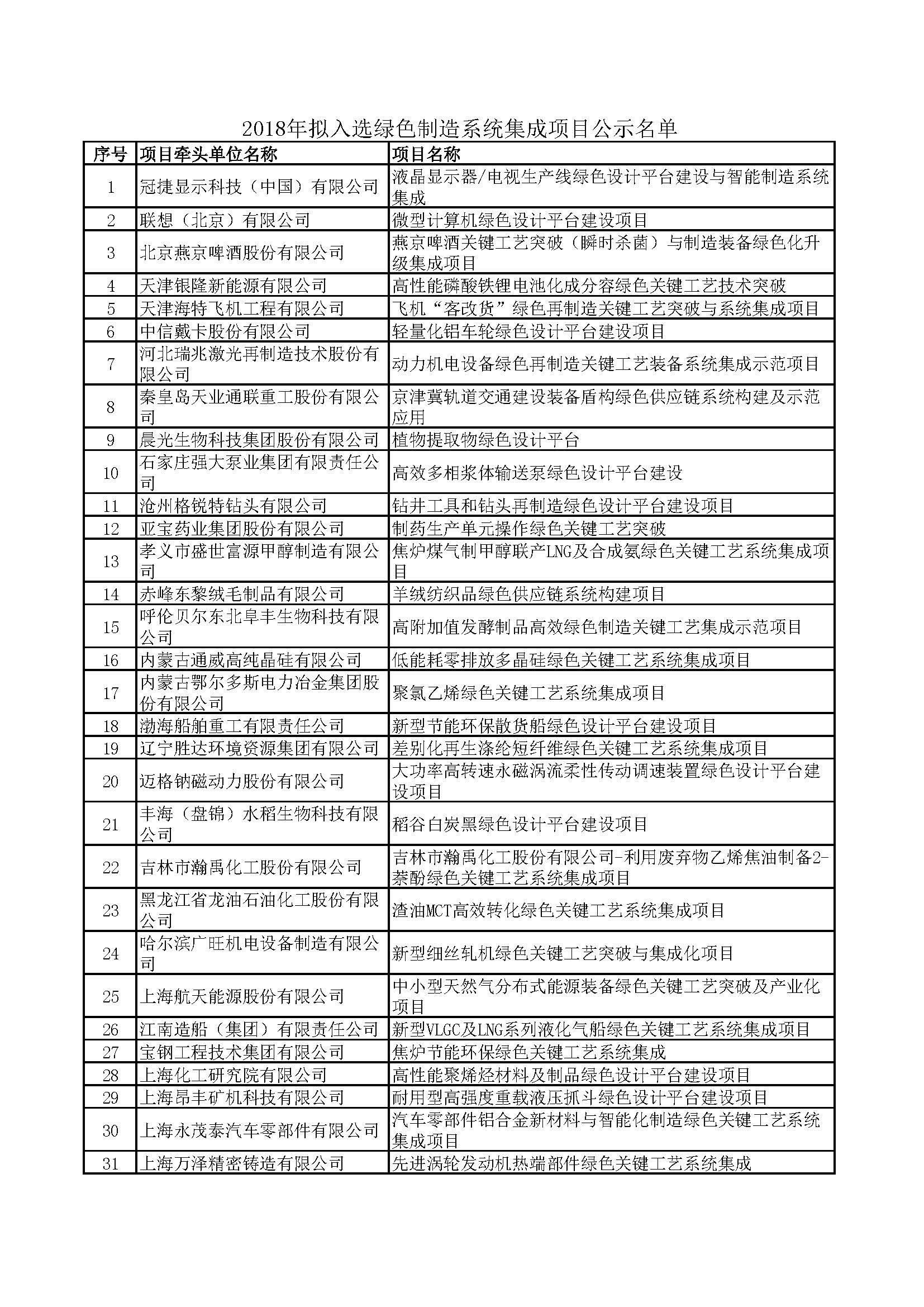 附件:2018年擬入選綠色制造系統集成項目公示名單