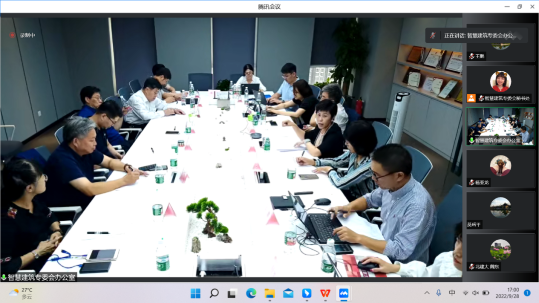 9月28日,由中國建筑節能協會智慧建筑專業委員會于北京召開智慧建筑專業委員會專家智庫成立儀式,本次會議以線上線下相結合的方式舉辦。會正式開始。住房和城鄉建設部標準定額司原一級巡視員、中國建筑節能協會副會長倪江波,中國建筑節能協會副秘書長付宇,住房和城鄉建設部科學技術委員會標準化專委會委員、全國智標委副主任委員、智慧建筑專委會主任委員馬虹,IEEE IES TC1技術委員會(中國)主席、智慧建筑專委會智庫工作委員會主任方潛生,北京建筑大學黨委常委、副校長、智慧建筑專委會智庫工作委員會副主任李俊奇,全國智標委副秘書長、智慧建筑專委會專家智庫工作委員會副主任尚治宇等領導出席此次會議。